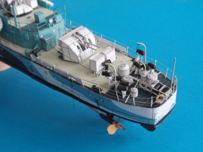 This kit includes resin parts, photo-etched parts, metal barrels and decals (also for HMS "Aldenham")