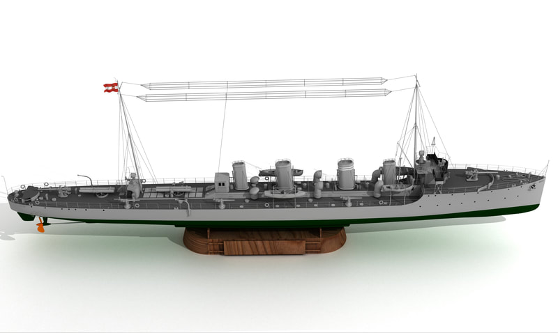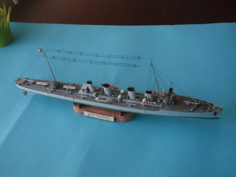 Accessories dedicated to this model: Metal barrels for the destroyer SMS "Tatra" £5.00 (incl.VAT) Photo etched parts set SMS "Tatra" - £7.20 (incl.VAT) Masts set SMS "Tatra" - £4.20 (incl.VAT) Laser cut frames SMS "Tatra" - £6.00 (incl.VAT) for postage costs please contact us. We accept PayPal Please visit GALLERY for samples of sheets and assembly drawings |